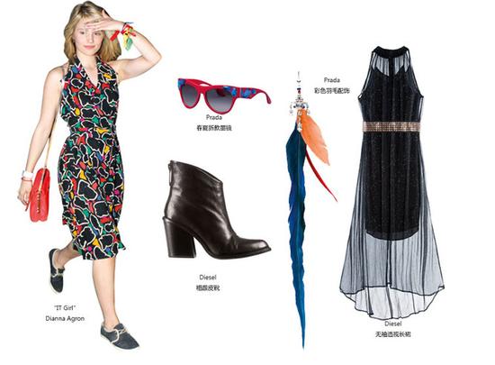 再來說說各路神仙般的明星、IT Girl們,關(guān)于時(shí)裝盛會(huì),她們都愛扎堆兒。走高貴優(yōu)雅女神范兒的,要看奧斯卡紅毯;走新潮尖端凹造型的,要看時(shí)裝周街拍;而想要活潑混搭接地氣的,那就 必須來看音樂節(jié)。愛穿長裙戴花冠的帕麗斯-希爾頓(Paris Hilton),愛露小腰的卓丹-鄧(Jourdan Dunn),愛運(yùn)動(dòng)風(fēng)造型的卡德拉姐妹(Khadra Twins),愛牛仔的時(shí)尚博主嘉拉-法拉格尼(Chiara Ferragni)……總之在音樂節(jié)不甘示弱的時(shí)尚舞臺上,雖說碎花單品加熱褲是絕對標(biāo)配,寬檐帽、爵士帽加上太陽鏡也是萬年錯(cuò)不了的必然裝備,但流蘇 包、雨靴什么的,還有民族派、復(fù)古風(fēng)、臟搖滾或是小摩登,也都有各自閃亮的一席之地,其實(shí)你怎么混著來都可以。凱特-莫斯(Kate Moss)姐當(dāng)年還專愛在格拉斯頓伯里音樂節(jié)(Glastonbury Festival)穿皮靴哩。