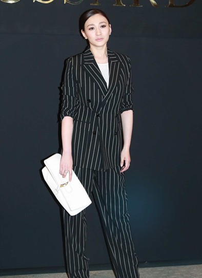 北京,《聶隱娘》記者會。舒淇身穿黑色西裝式連體褲,搭配金絲高跟涼鞋,個性帥氣,但卻被說像售樓小姐,因為全身都是黑色,很容易讓人覺得很呆板,連她氣質(zhì)那么好都穿成這樣,一般人可要小心別全身黑色西裝了。所以說,職業(yè)裝定制時顏色的搭配是極其重要的。