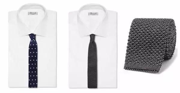 這是一種小白領大智慧的V區(qū)風格。主題為普通的白襯衫,特點是桶行卡夫和中庸開角的企領,這不適合配華麗的軍團領帶但又要提升品味,有效的V區(qū)設計是搭配素地星點圖案領帶或素面針織領帶。這可以說是職員以簡約素雅應對正式商務的大智慧。